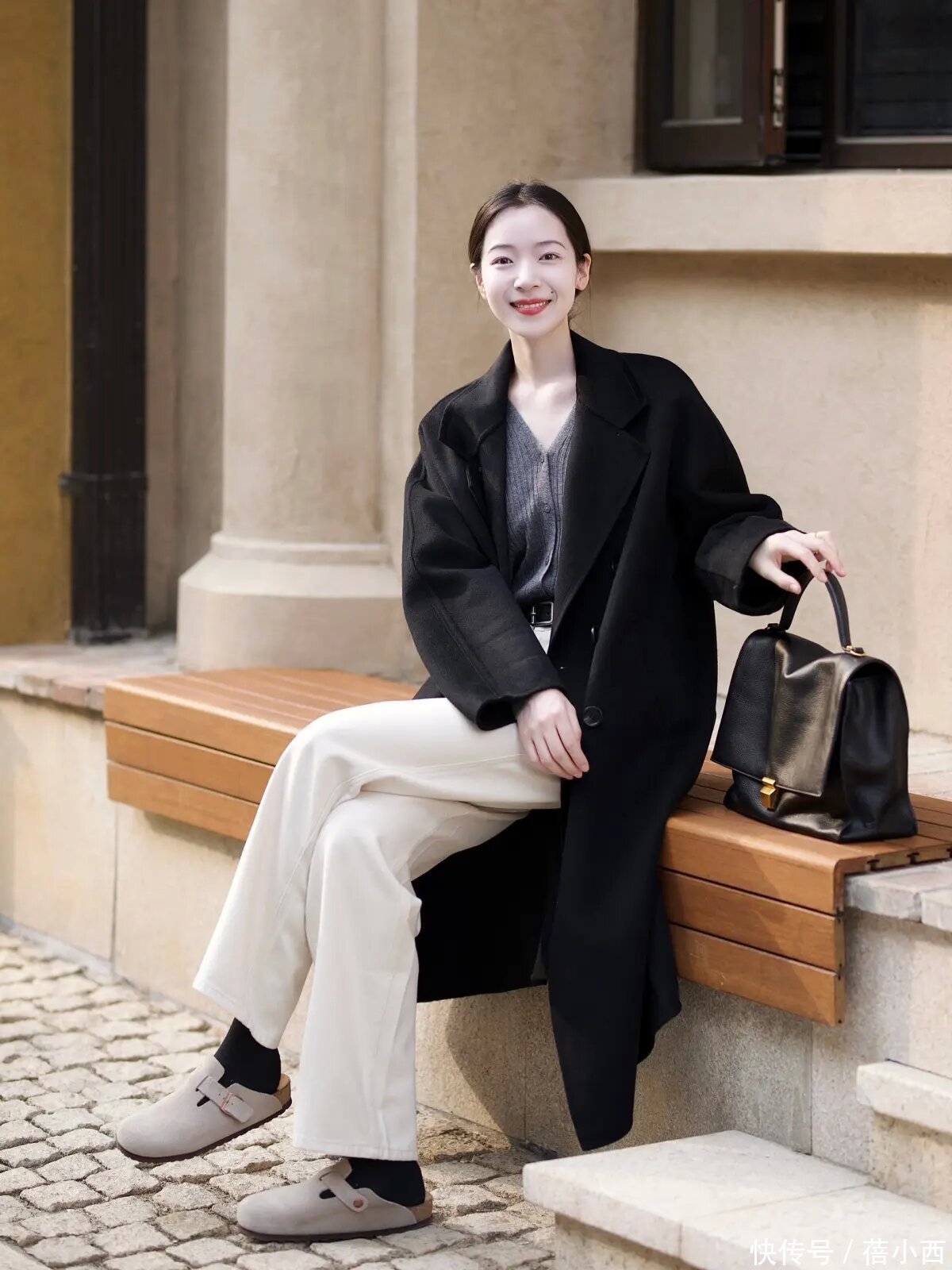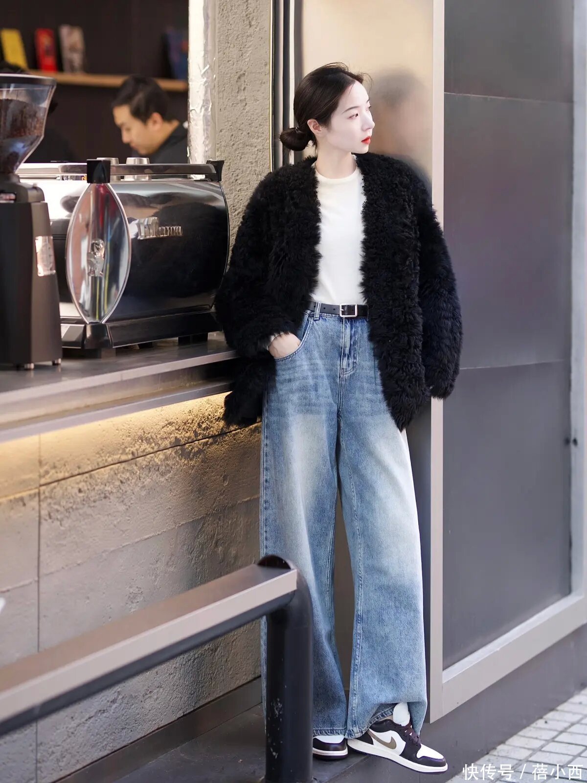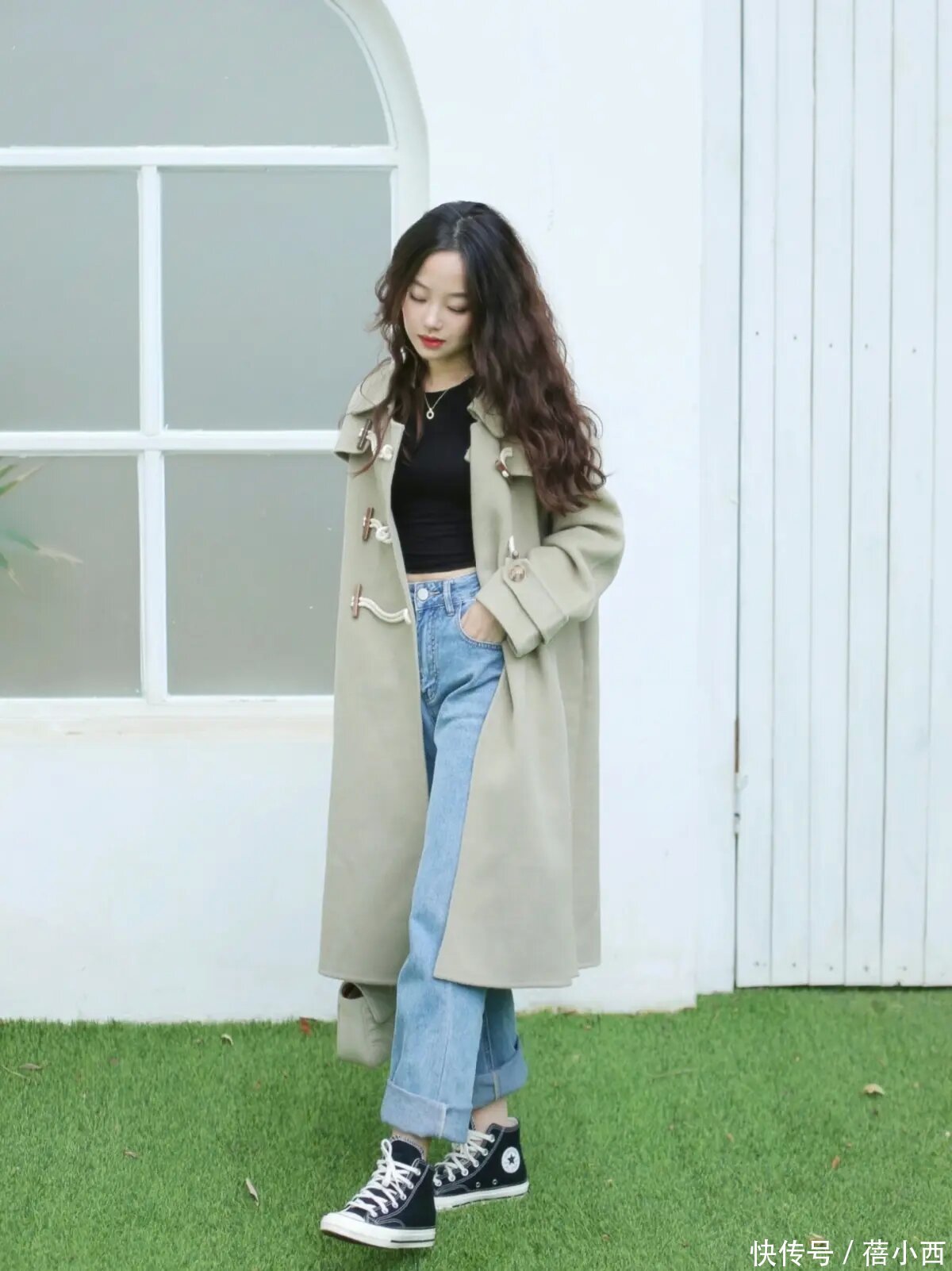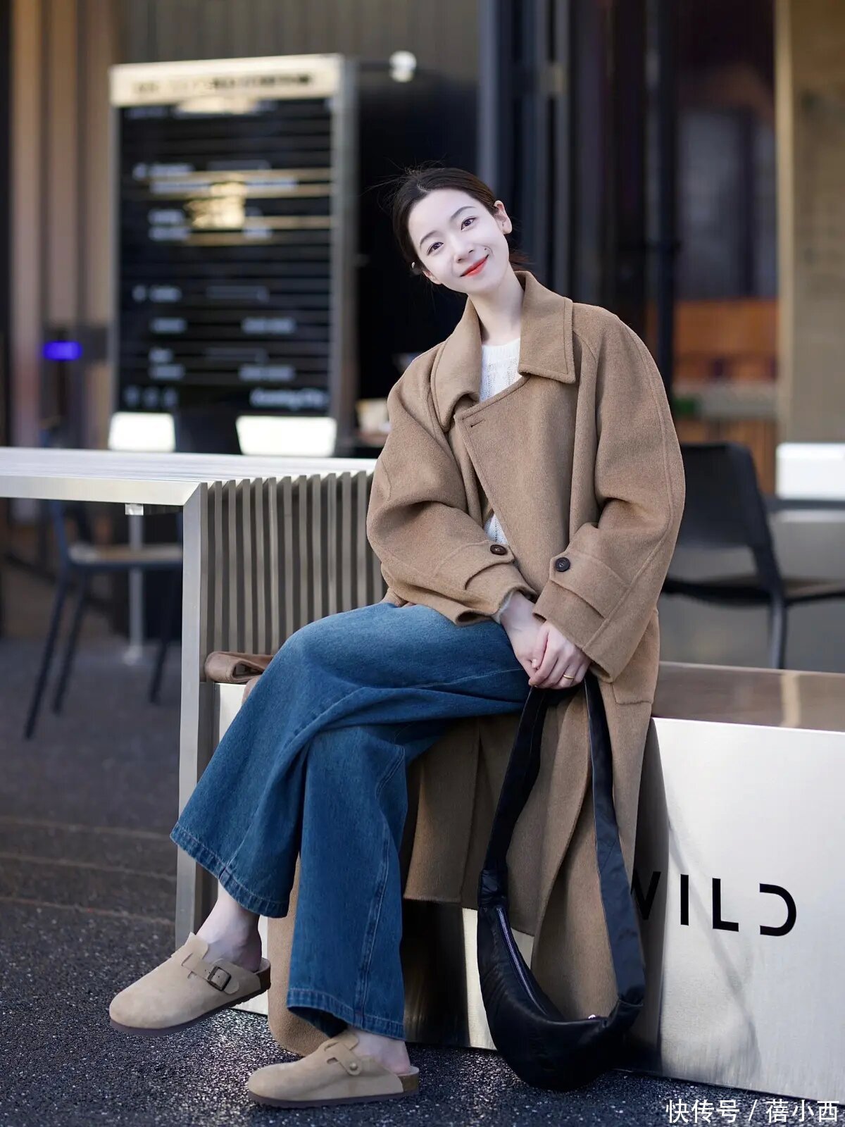 说真话,其实像这么的大衣和牛仔裤的搭配已经蛮经典的,而且腿粗的女生不错径直穿阔腿牛仔裤,展现出一定的失业感,还不错在穿的技艺用这种最经典的玄色大衣去搭配,裁减搭配的繁琐感,显得纯粹利落。