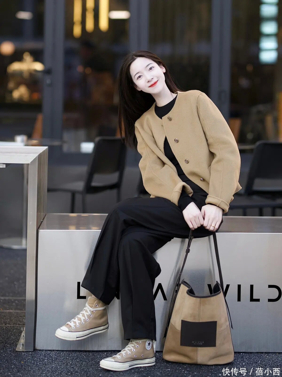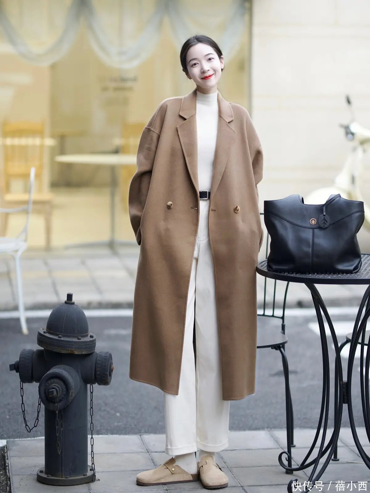 白色是一种很天果然情态,在千里闷的冬日里,一抹白色也不错为咱们的造型增添光彩,棕色大衣和白色打底衫的搭配就显得很澄莹,下半身的白色阔腿裤也灵通了疏忽超逸的气质。