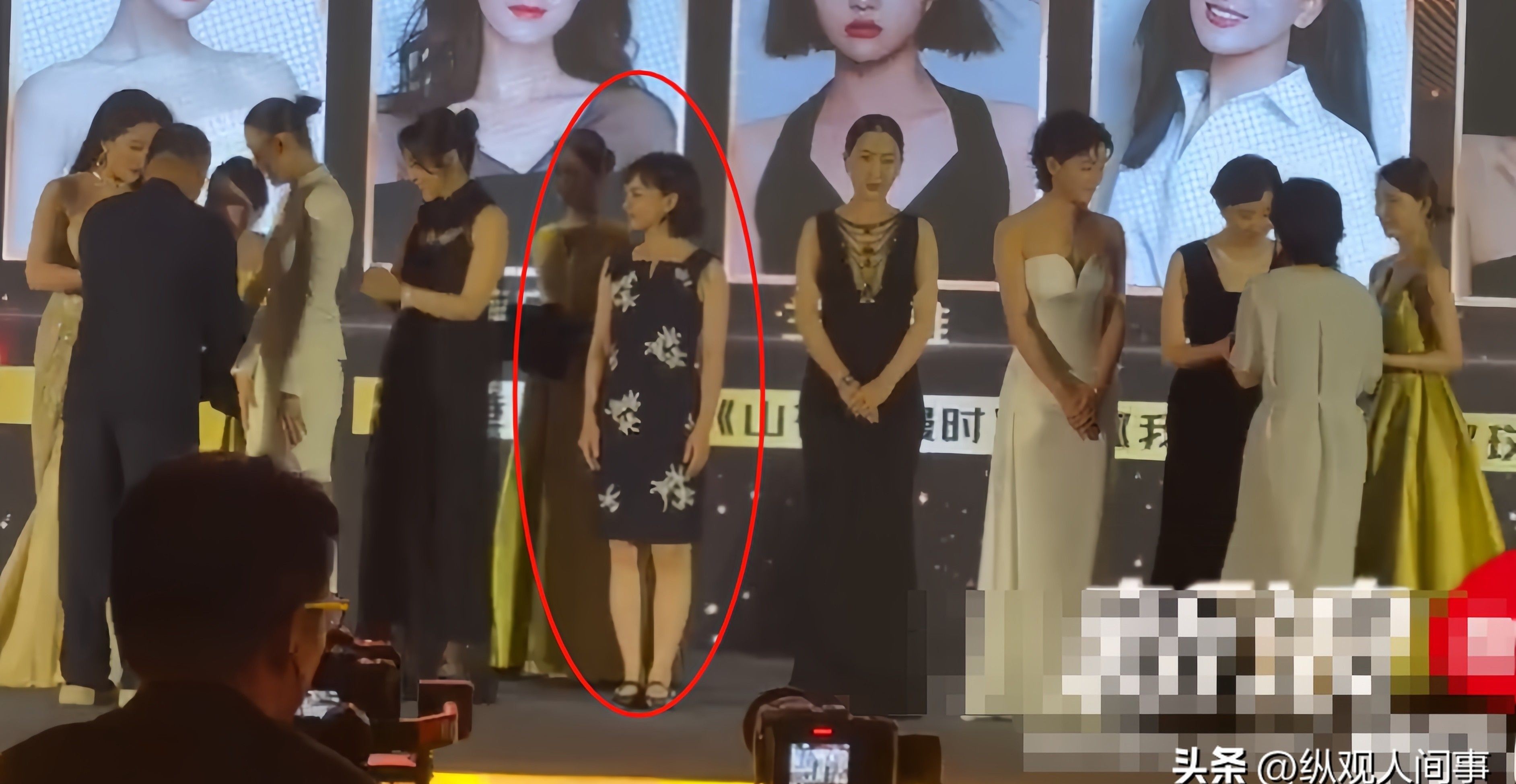 和其他女星比拟,她不仅莫得展现出应有的光彩,反而像个误入天鹅群的小鸭子。脸大肩宽,体魄比例也不够合营,站在东说念主群中显得格外庸碌。