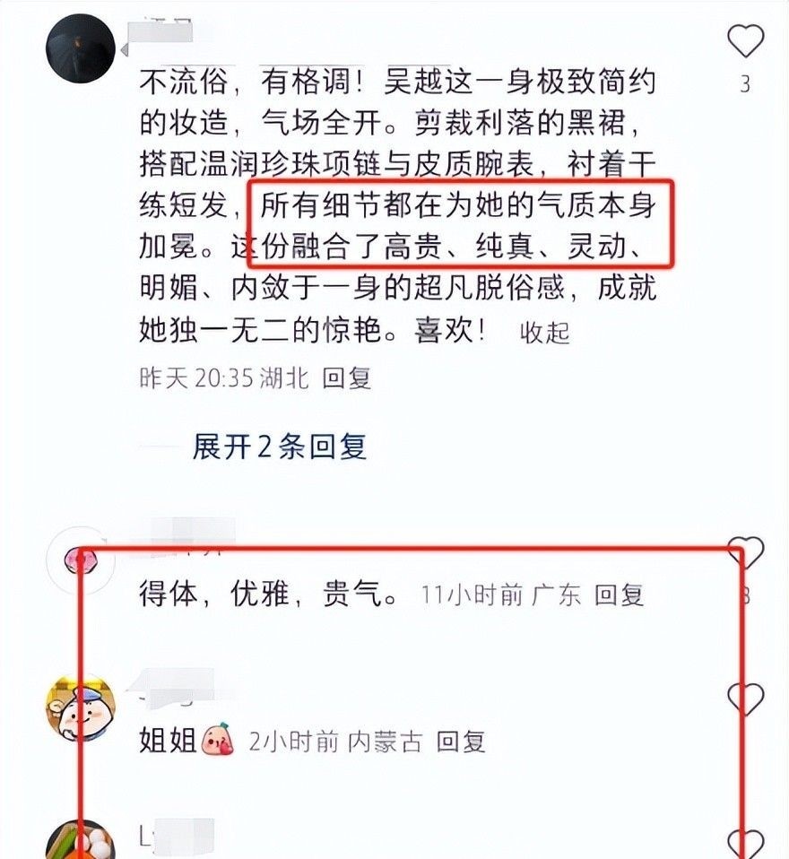 走上红毯的时候,她还挑升双手拿起裙摆,动作娇羞,但没多久我方就笑场了,捂嘴的神情短暂让东说念主念念起《武林传奇》里的佟湘玉,亲切感扑面而来。 而吴越则完全是另一种作风。