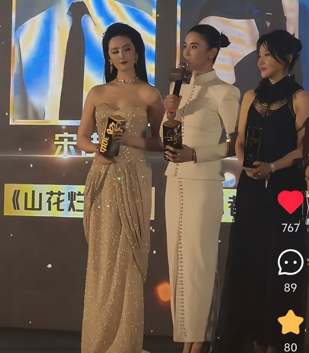 尽管如斯,刘亦菲统共东说念主的情景非常繁盛,在红毯上走在众女星前哨,险些闭塞不住我方的本心,和死后形式漠然的宋佳、闫妮变成了明显对比。 --- #### 闫妮 vs 吴越:随和与考究的对决 要说红毯上最有亲和力的女星,非闫妮莫属。 她一直以来都是“随和感”的代名词,此次也不例外。身上穿的衣服仿佛是从自家衣柜里唾手挑出来的,连脖子上的蕾丝都炸成了鸡毛状,但她我方还一脸认知地以为这是很公主风的缱绻。