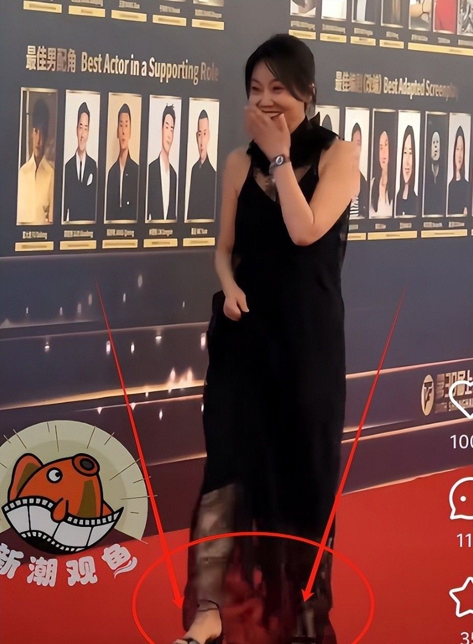 别东说念主基本都一稔10厘米以上的高跟鞋,站姿挺拔,气场完全,可她偏巧选拔了一对低跟鞋,拉长比例的契机就这么错过了。
