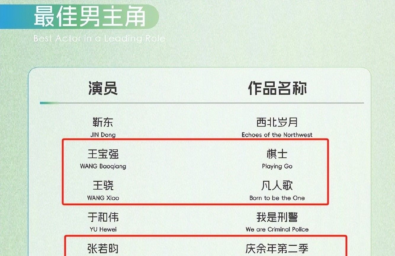 在最好男主角这一块,靳东、于和伟、王宝强、王骁以及张若昀都是强有劲的竞争者。固然张若昀履历稍浅一些,但他主演的《庆余年2》热度极高,预约东说念主数早就打破千万,号称称心级大作,他本东说念主也极有可能成为今晚的最大惊喜。