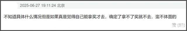 然则此举也惹来争议,评奖即是竞争,有东说念主领奖当然就得有东说念主陪跑,因为我方没得奖就不错不尊重其他东说念主的恶果,临时变卦不出席授奖礼?