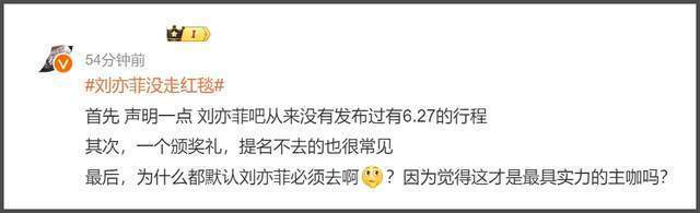 而疑似知情东说念主深入,刘亦菲缺席的情理竟然是提前知说念了获奖适度,发现我方无缘视后,是以临时决定不去授奖礼了,以至粉丝还扬言“刘亦菲不妥饱读掌咖”。